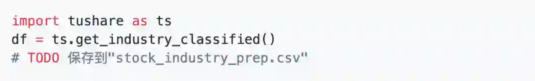 通过以下的代码获得股票行业信息,并把返回的信息直接存储在stock_industry_prep.csv文件里。