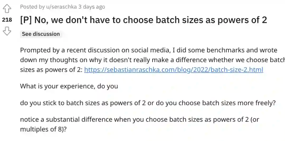 [1]https://www.reddit.com/r/MachineLearning/comments/vs1wox/p_no_we_dont_have_to_choose_batch_sizes_as_powers/