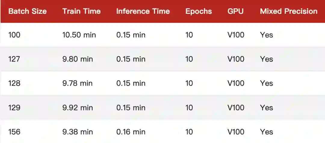 似乎将批大小减少1(127)或将批大小增加1(129)确实会导致训练性能略慢。但是差异十分微小,作者认为可以忽略不计。