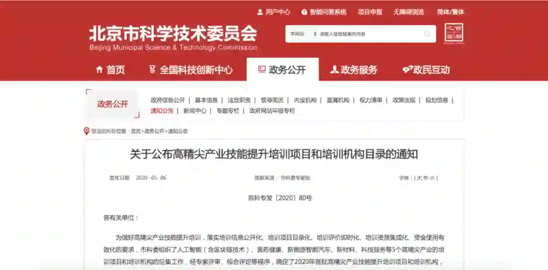 近日,北京市科学技术委员会公布了 2020 年首批高精尖产业技能提升培训项目和培训机构名单,