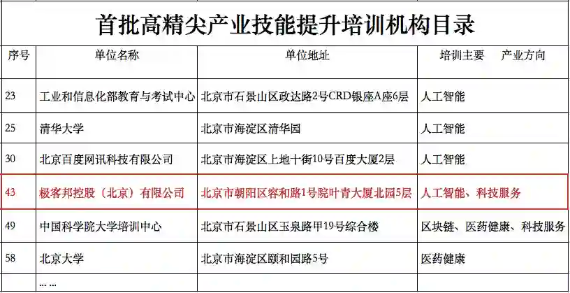 「极客邦科技」入选“首批高精尖产业技能提升培训机构目录”