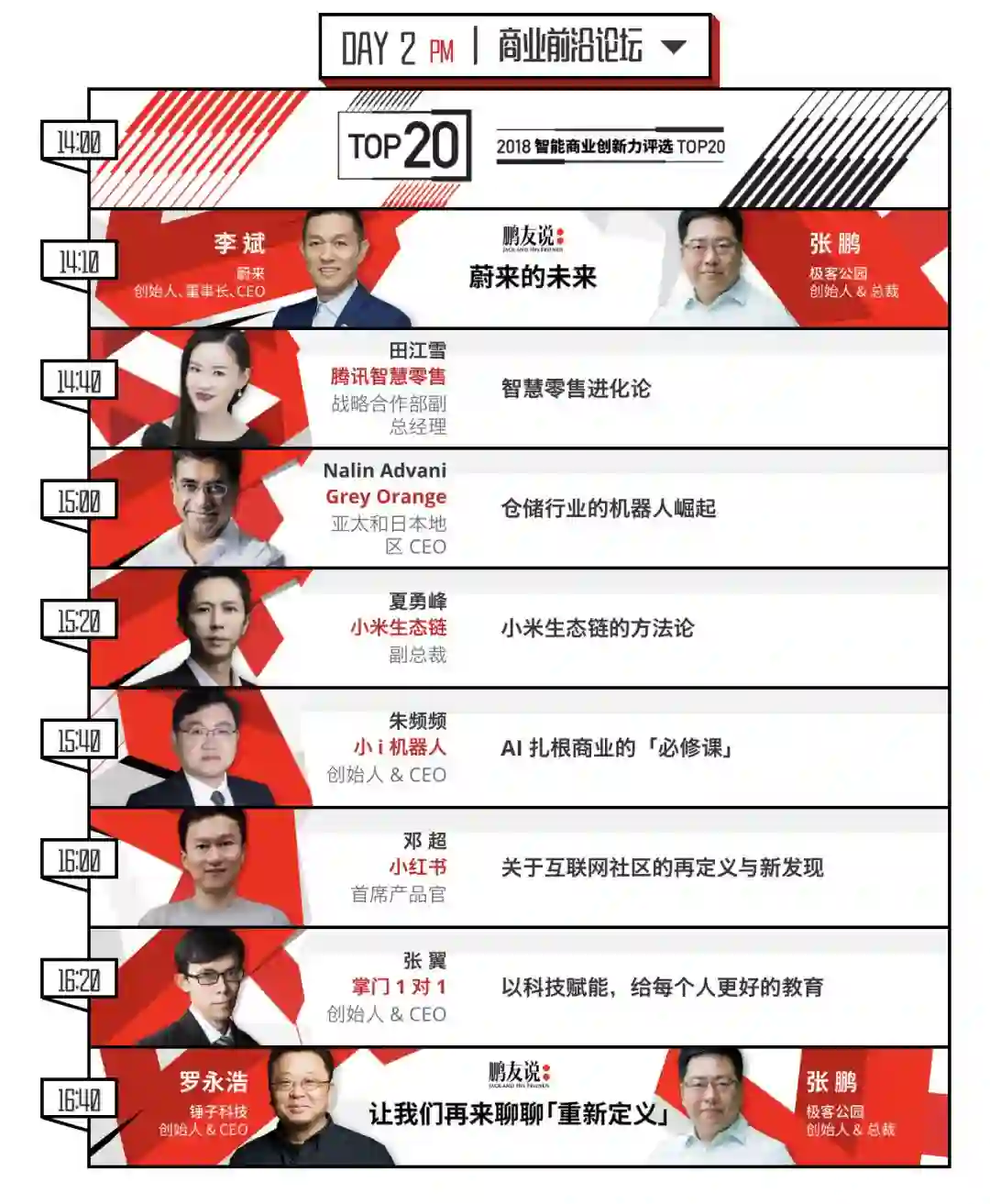 他们是来自全球的科学家、企业家及创新者,关注智能出行、通信、电商、教育等各个领域。区块链技术大热的背景下,欢聚时代 CEO 李学凌看到了新的机会,重新发明互联网既是这次演讲的主题,也是决心;老规矩,锤子科技创始人&CEO 罗永浩将和极客公园创始人张鹏进行深度交流,这次他们要聊一聊「重新定义」;亚马逊 AWS 首席科学家 Animashree Anandkumar 将回答「云上的 AI」如何引爆创新突破点的问题。DJI 大疆创新总裁罗镇华、小米生态链副总裁夏勇峰、科大讯飞副总裁李世鹏...... 超过 40 位演讲嘉宾、上百位行业创新者将于这周末共聚成都•成华区•东郊记忆。