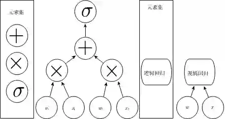 图 1.3 将输入映射到输出的计算图表的示意图,其中每个节点执行一个操作。深度是从输入到输出的最长路径的长度,但这取决于可能的计算步骤的定义。这些图中所示的计算是逻辑回归模型的输出,σ(wTx),其中σ是 logistic sigmoid 函数。如果使用加法、乘法和 logisticsigmoid 作为计算机语言的元素,那么这个模型深度为 3;如果将逻辑回归视为元素本身,那么这个模型深度为1