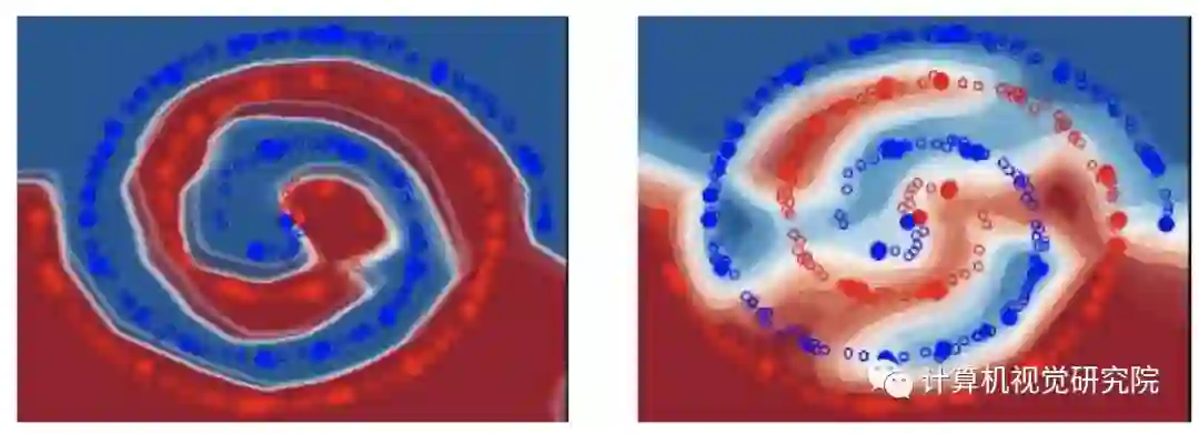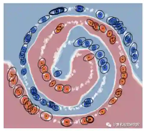 我们从上图中看到,用BN进行监督训练,很好地学习了标记样本的分布,从而学习了准确的决策边界。然而,这些决策边界并不反映真实的数据分布。相反,使用UBN,网络学习将其决策边界与data manifold对齐,并通过使用未标记样本的批处理统计来学习,在标记样本之间进行插值。