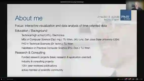 2022年6月30日晚,中国图象图形学学会可视化与可视分析专业委员会组织的第二十期可视化与可视分析国际学术报告成功举行。此次报告特邀Wolfgang Aigner教授担任讲者,进行了题为《TimeViz: Visualization of Time-Oriented Data》的精彩报告。Aigner教授是奥地利圣波尔腾应用科学大学创意\媒体/技术研究所(IC\M/T)的科研主任,以及奥地利维也纳工业大学的兼任教授。他的研究兴趣主要包括可视分析和信息可视化,研究重点集中于面向时间的数据。Aigner教授分别于2006年和2013年获得了维也纳工业大学计算机科学的博士学位和教授资格证。