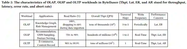 表 - 字节内部 Graph OLTP/OLAP/OLSP workloads 特点总结