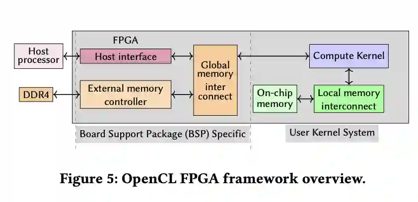 具体的实现方法是,将 OpenCL 作为一个库整合到系统内核中以函数调用的方法提供支持,压缩部分已经已经整合到了 OpenCL 中,而加密部分则使用 VHDL 实现,即图中的 AES-256 算法。