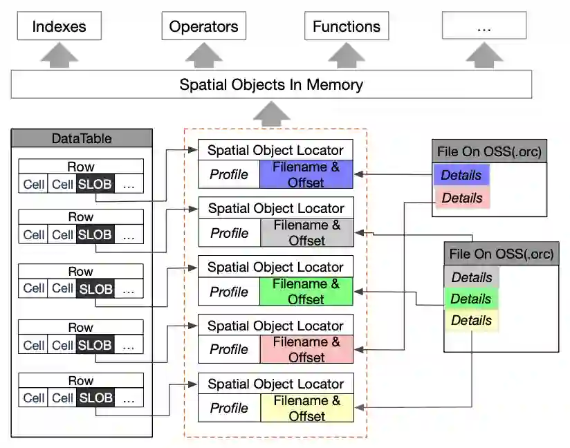 引入拓展存储 (Extended storage) 设计 :时空数据是很复杂的数据模型,相比于传统的关系型数据,数据结构更丰富、需要占用更多的存储资源,并且在使用过程中具有明显的冷热数据分离问题,为此 Ganos 采用了分布式共享存储 + 拓展存储(OSS Alibaba Cloud Object Storage Service)的方案,很好的平衡了存储成本、数据访问性能需求。