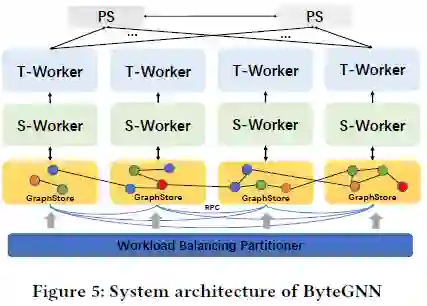 ByteGNN 为了显著降低网络开销,首先从系统架构层面将采样与训练这两个阶段作了解耦,让不同执行器分别负责一次 mini-batch 中的采样与训练: