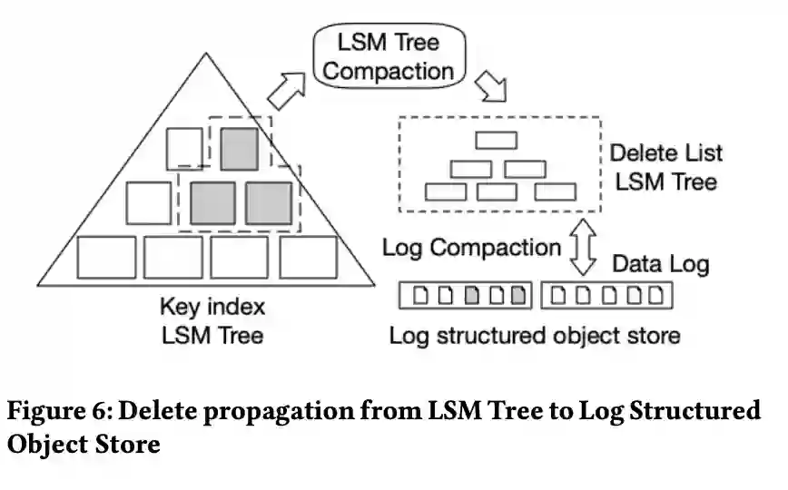 相比于经典的 WiscKey,这篇论文最大的贡献在于 GC 的设计,其不需要像 WiscKey 在 GC 时扫描整个 value log 并进行 point get 查询,而是首先对 key sst 进行 compact 产生 deleted key set,再根据 deleted key set 中记录的 value sequence id 计算得出每段 value log 对应的垃圾数据的比例,只需要对垃圾比例较高的 value log 段与邻接段进行 merge 即可。这样既可以避免 WiscKey GC 时的大量 point get,也可以根据垃圾比例对 value log 进行分段 compact,降低写入放大。