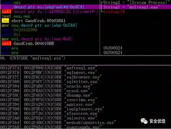 病毒会结束指定进程,防止文件被占用无法加密,主要是针对数据库和办公软件的进程。