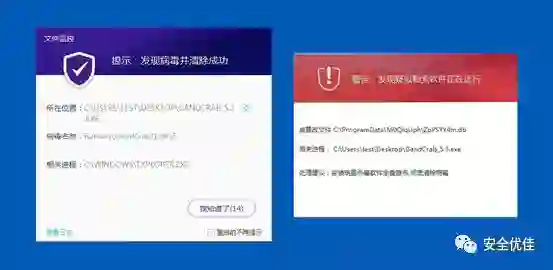 图:瑞星ESM与瑞星之剑拦截查杀截图