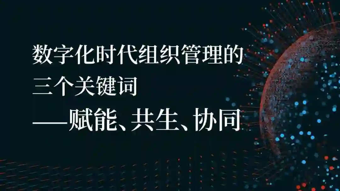 我回顾一下我所说的观点,在数字时代或者互联网的时代,我们在组织的管理当中,至少有三个最重要的关键词需要你去理解它。第一个是赋能,第二个是共生,第三个是协同。