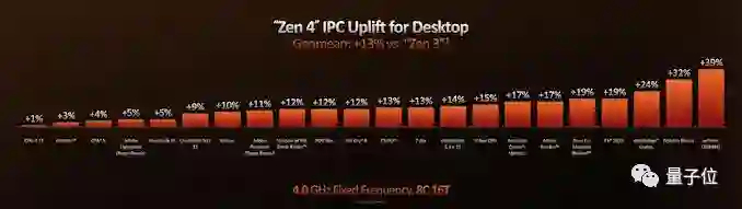 本次一同公布的,还有Zen4在固定4.0GHz频率、8核16线程下的IPC性能。
