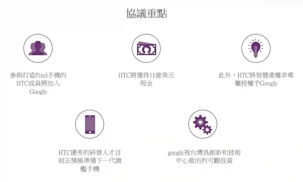 谷歌今日宣布,已与HTC达成11亿美元的合作协议。根据协议,原来参与打造谷歌Pixel手机的HTC员工将加入谷歌,同时HTC也将其部分知识产权授予谷歌使用。