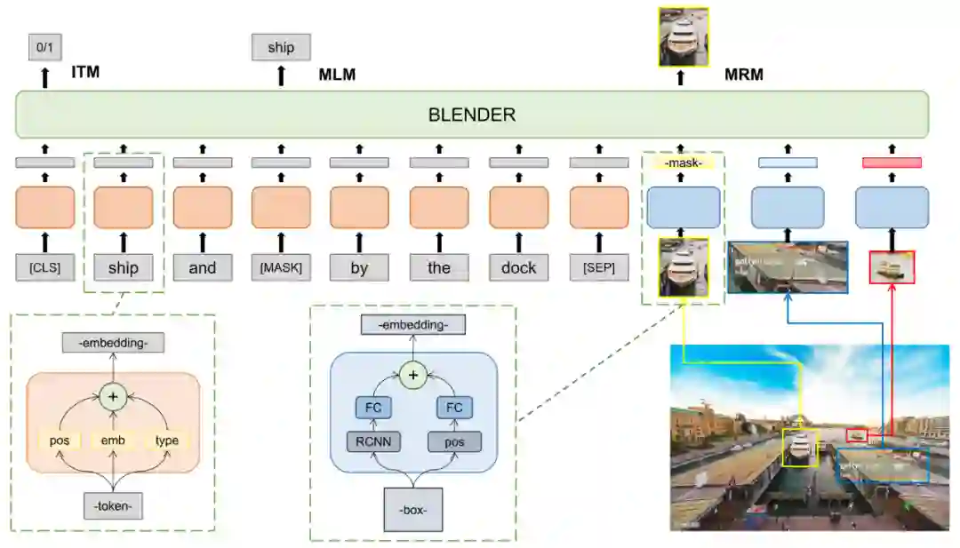 BLENDer 基于当前主流的 one stream 的视觉语言 BERT 模型,该模型的学习过程分为三个阶段: