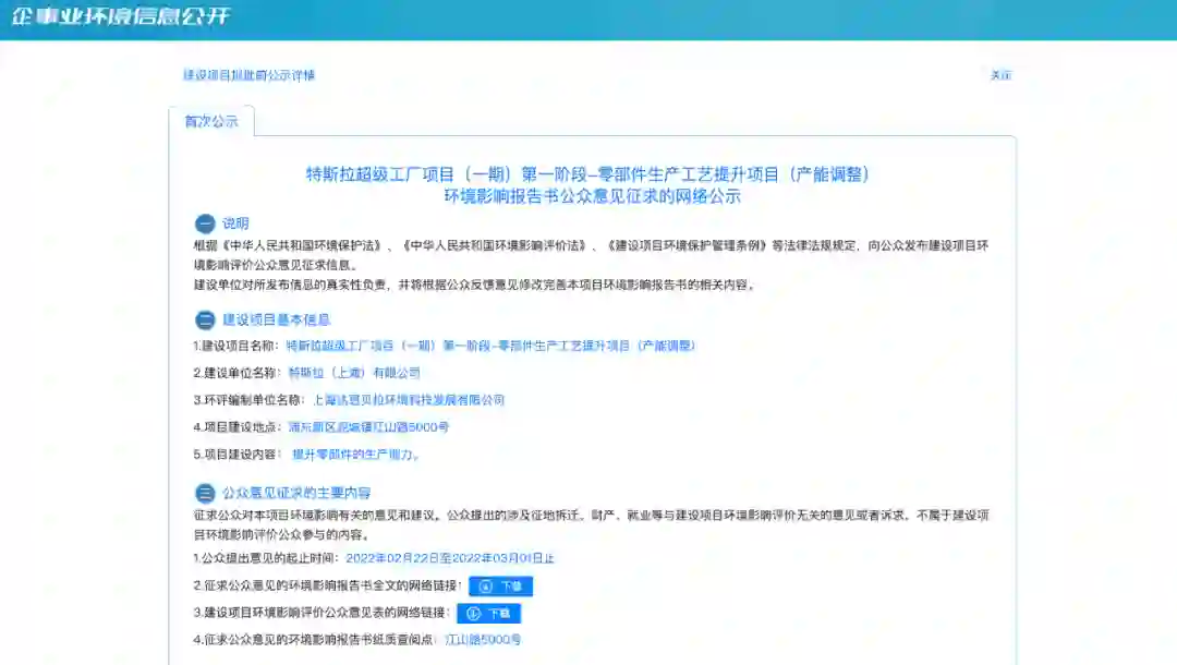 去年 11 月,特斯拉上海工厂的第二阶段产线优化项目刚刚进行了环评公示,投资总额 12 亿,预计今年 4 月完工。