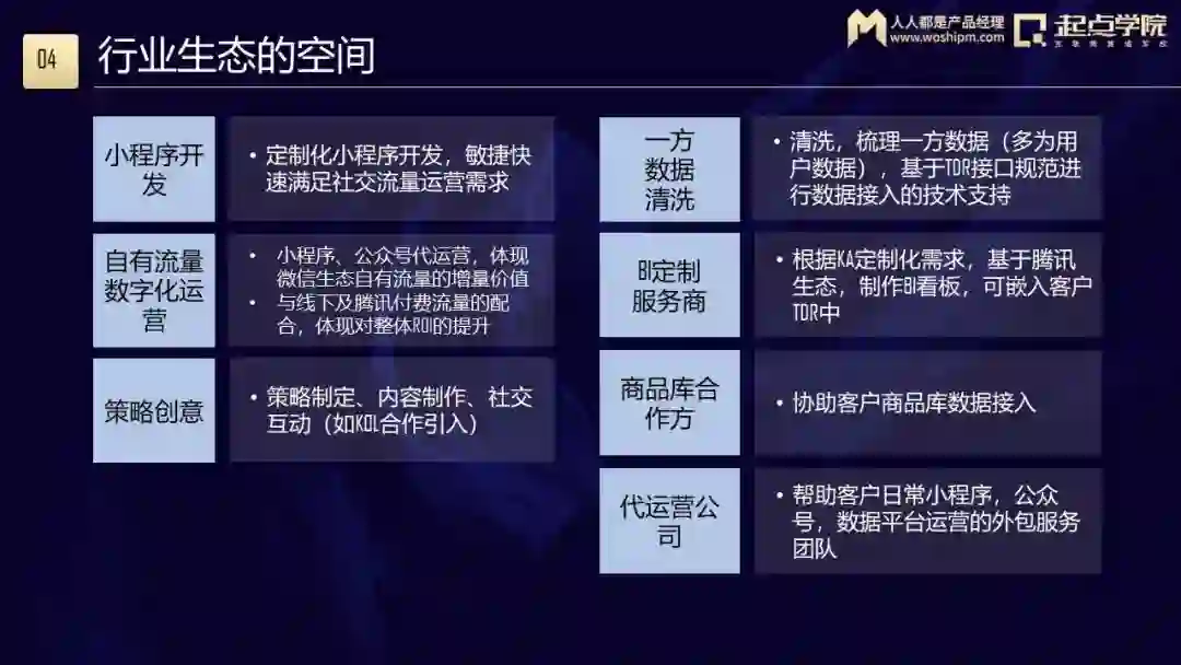 黄色的部分其实很少,大部分是T厂自身没有只能依赖合作伙伴去完成的。特别是第六部分,类似于数据清洗、数据对接、数据接入的工作,在这些领域已经有规模比较大的企业了。