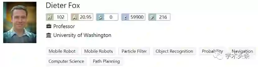 Dieter Fox已经发表超过150篇学术成果。同时,他还是机器人学领域经典著作《概率机器人学》(Probabilistic Robotics)的共同作者,这本书被誉为是奠定当代主流机器人理论之作,书中详细介绍了粒子滤波的机器人应用,并从概率的角度讲解了机器人问题的解决方法。