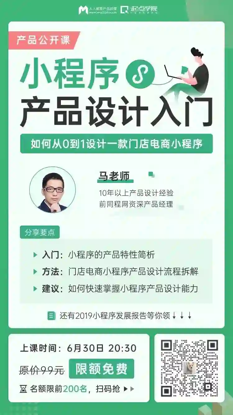 为了帮助意向进入小程序领域的产品同学,更快上手小程序产品设计,起点学院特邀业内资深产品老司机@马老师,以门店电商小程序为例,拆解——