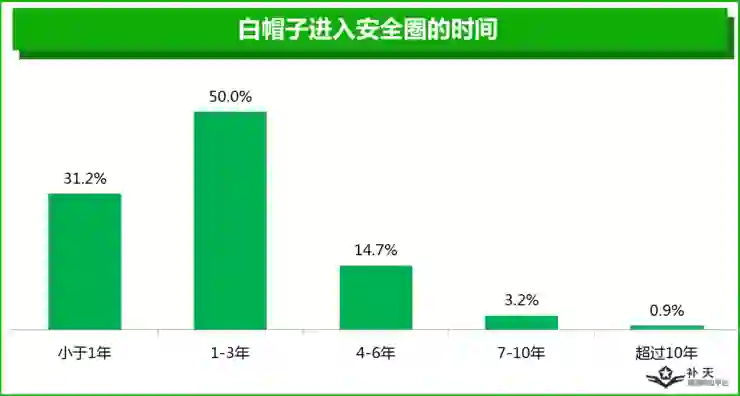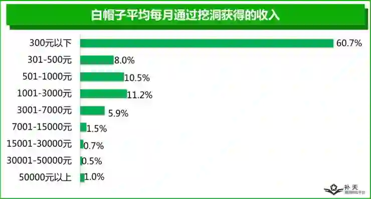 调查显示,有超过8成的白帽子拥有专科或本科学历,但有约4成白帽子为在校学生。其中,高中或初中在校生约占10%。总体而言,白帽子的学历水平正在不断提高,硕士、博士等高学历人群在白帽子群体中也已经不再罕见。