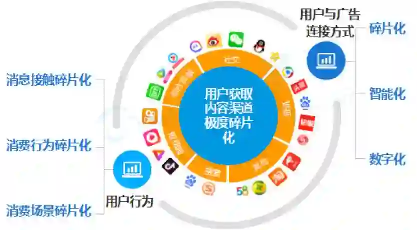 用户行为—用户信息获取方式、消费行为、与广告的连接方式呈现出碎片化的特点