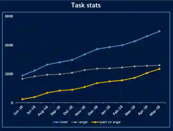 如图3所示,在过去12个月,Angel在腾讯内部的任务数量有了非常明显的增长,增幅达到150%。值得一提的是,Spark On Angel的任务数增长了10倍,为了让Spark On Angel更加的易用,3.0版本对Spark On Angel做了大幅度升级。在腾讯内部,使用Angel的业务包括腾讯视频,腾讯新闻和微信等。