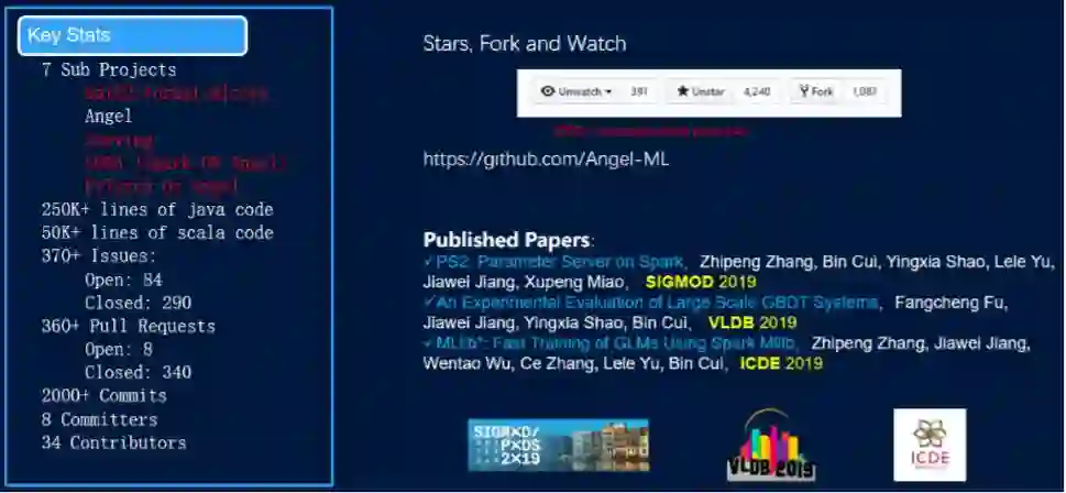 图 3 GitHub上Angel的统计信息以及Angel发表的论文