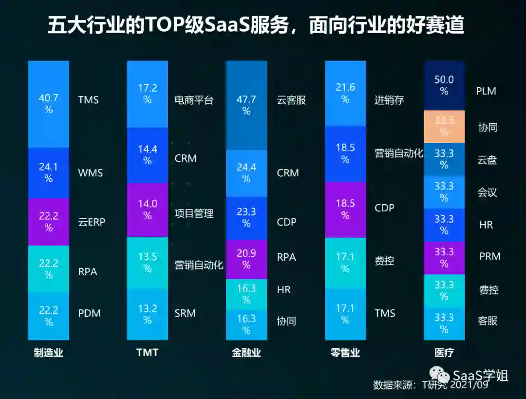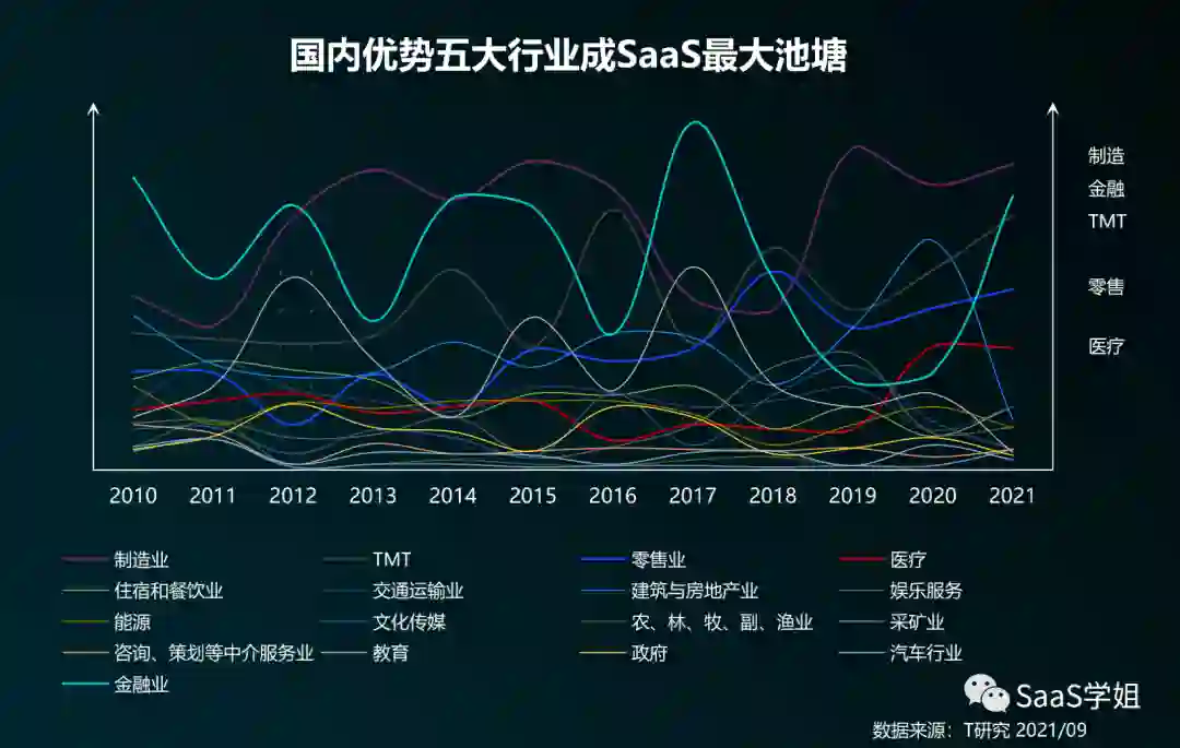 而中国SaaaS10年,起起伏伏,仍然主要聚焦在5大行业。