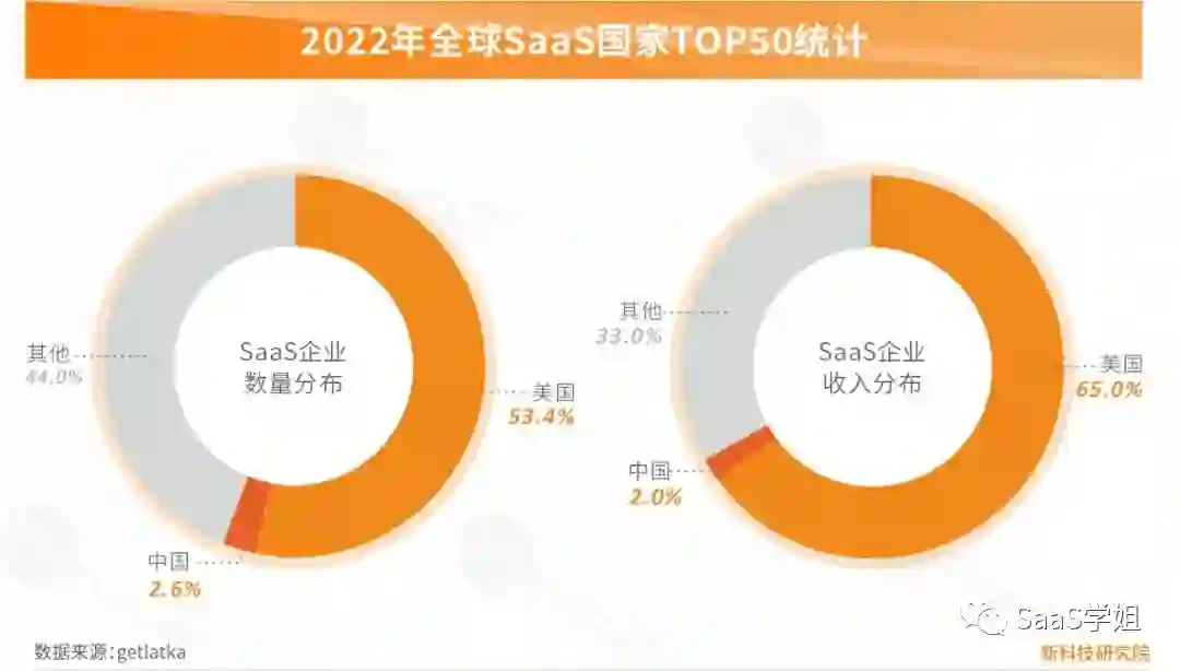 而一份今年的统计说明:美国 SaaS 公司收入全球占比超 60%,中美 SaaS 企业 TOP10 总市值相差 17 倍。