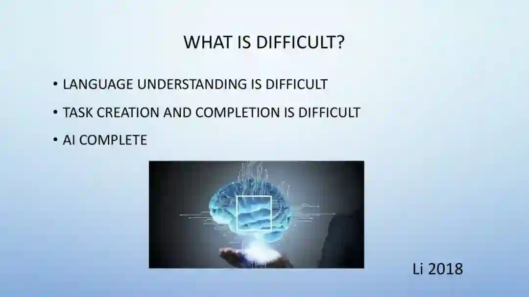 为什么自然语言对话非常困难,总结起来有两个问题非常难解决,如果能够解决,就可以实现人类一样的智能。