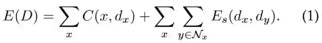 优化量 如公式1。 为像素, 为对应的深度。 为匹配的cost, 为正则项。四个部分中前两个部分构建 ,后两个部分构建 并估计深度(视差)。