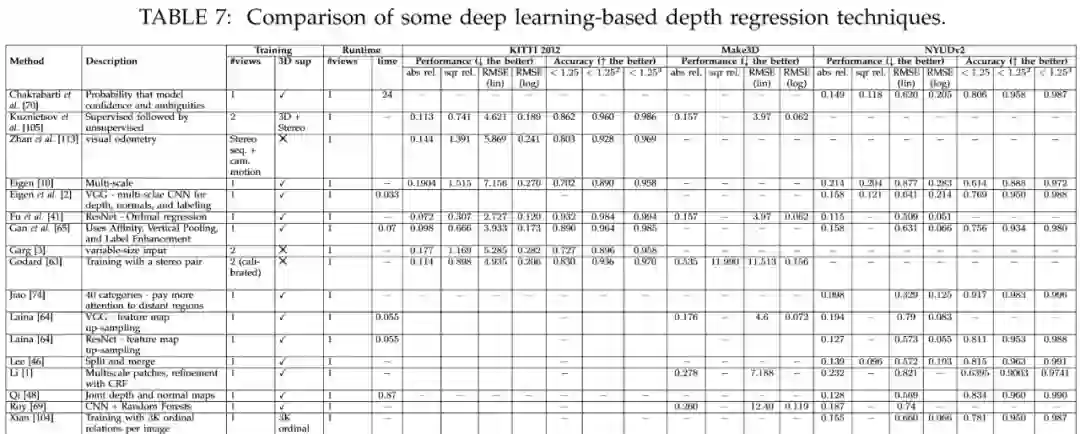 TABLE 7总结了深度学习方法回归深度的结果。有如下四个结论。