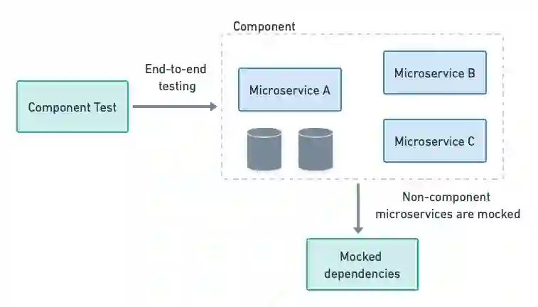 组件测试执行一组微服务的端到端测试。超出组件范围的服务都是模拟的。