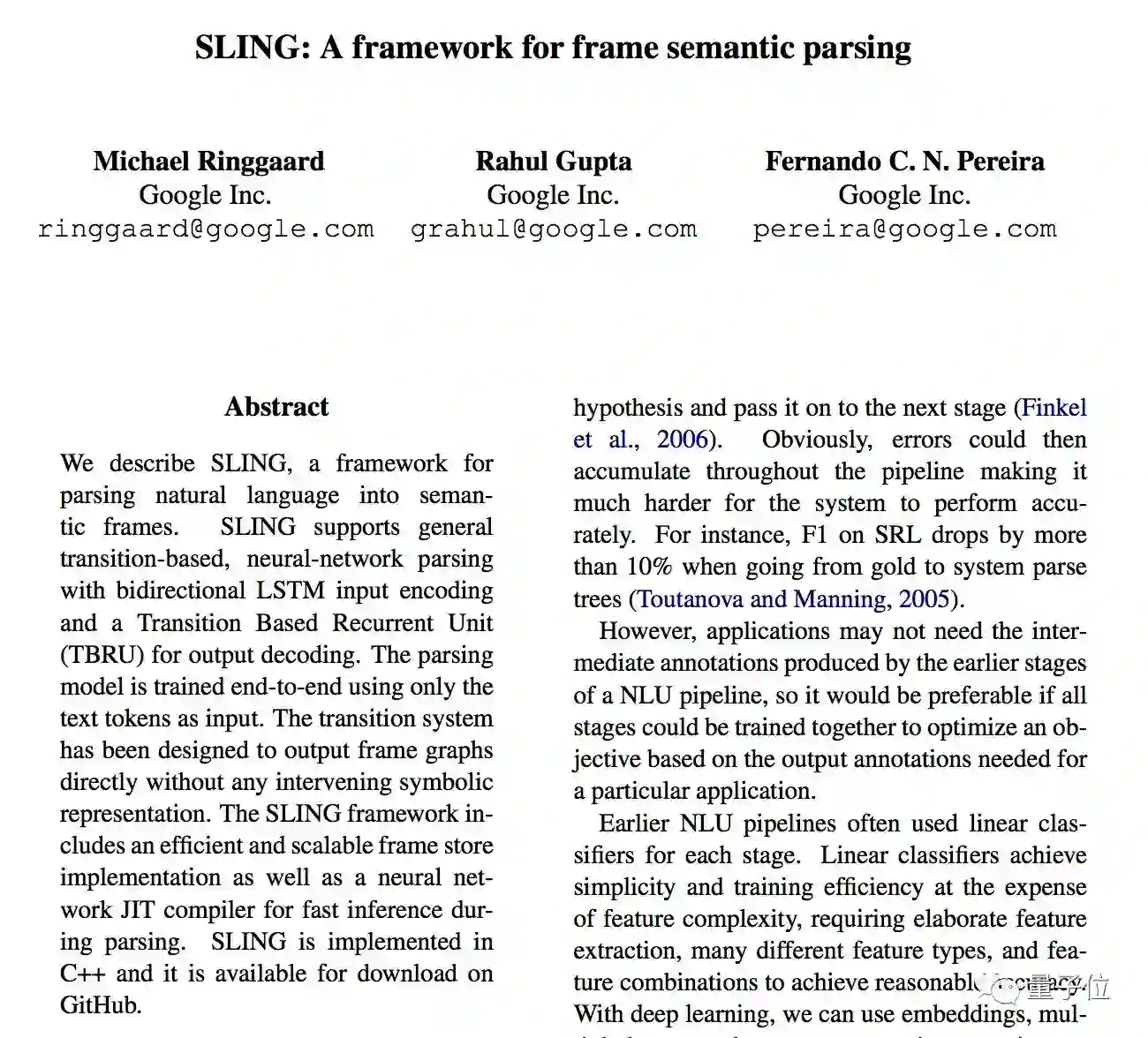 谷歌打破了这条流水线上的所有步骤,把它们捏到了一起,推出了一步到位的自然语言理解系统:SLING。