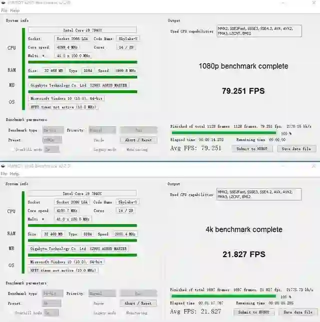 1080P 的视频处理速度为 79.251Fps,4K 的视频处理速度为 21.827Fps