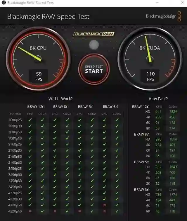Blackmagic Design 出品的 Blackmagic RAW Speed Test 测试程序,能直观的反映出整机处理高清视频素材时的流畅度。
