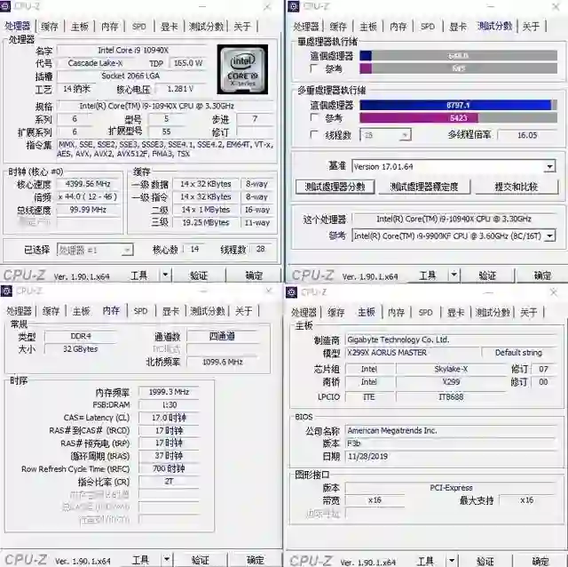 传统跑分软件还是要跑一下,软件里面都能正确识别到 i9-10940X