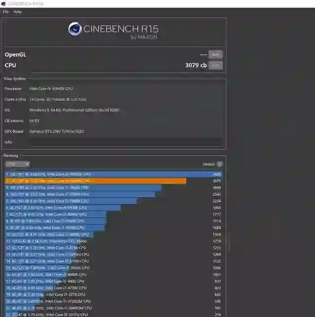 R15 得分 3079 分,比下面超冒烟的 7900X 还是强上不少,