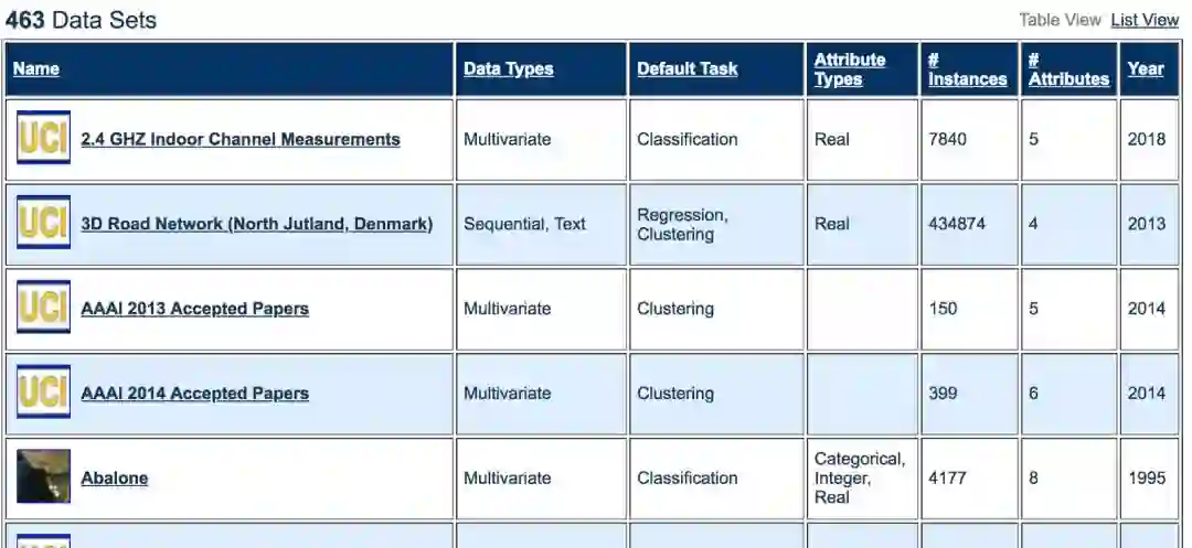 这是加州大学信息与计算机科学学院的一个数据库,包含了100多个数据集。它根据机器学习问题的类型对数据集进行分类。你可以找到单变量、多变量、分类、回归或者是推荐系统的数据集。UCI的某些数据集已经更新完毕并准备使用。