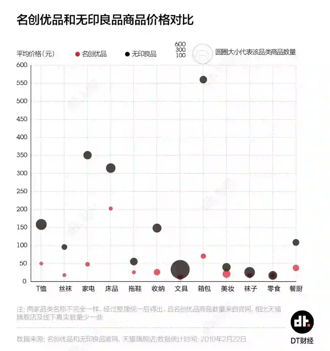 DT君采集了名创优品和无印良品官网在售商品的信息,发现名创优品的产品类别覆盖度丝毫不输无印良品,不过在各个品类上的产品数量还是远远不及无印良品。