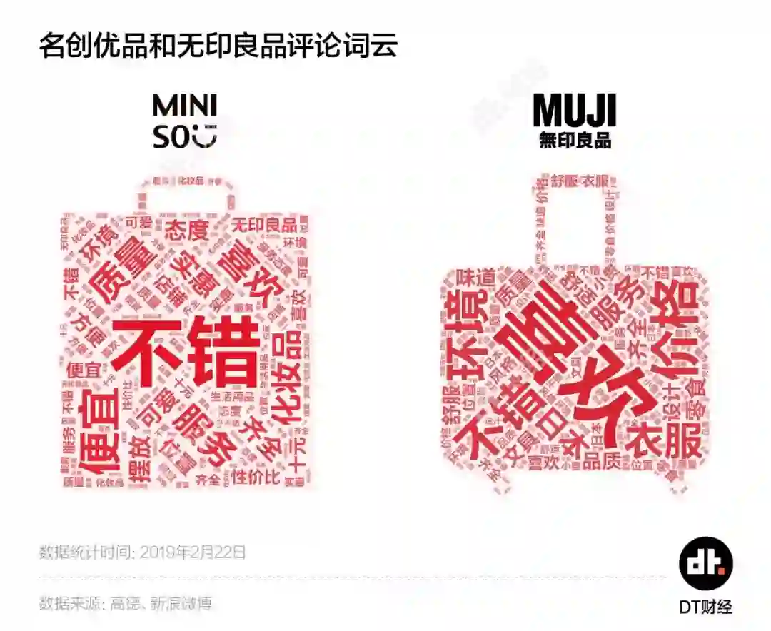 DT君采集了高德及微博上约2万条关于名创优品和无印良品的评论,分析大家在提及这两个品牌时的情绪和内容。