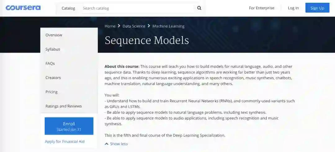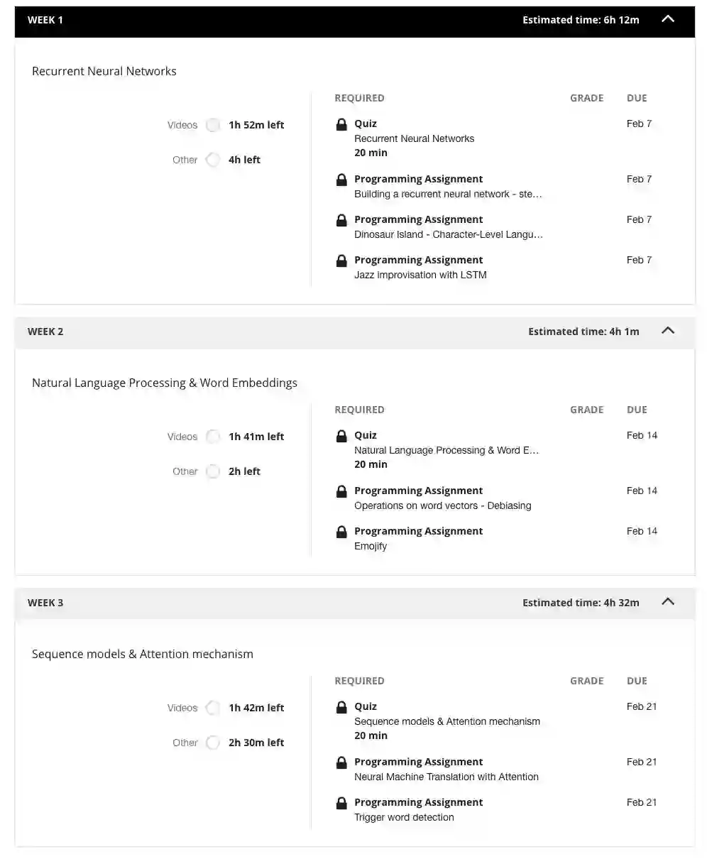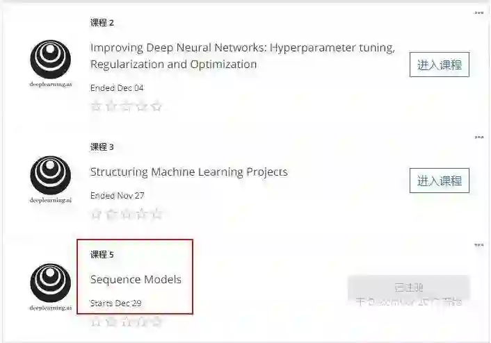 图:Coursera官网显示,深度学习第5部分课程1月31日开始