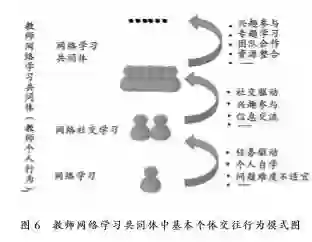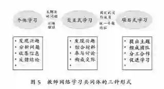如图5所示,教师网络学习共同体的三种形式相互依存、相互促进,既同时存在于同一的学习共同体中,又针对不同种类的教师网络学习共同体,各有不同特色。