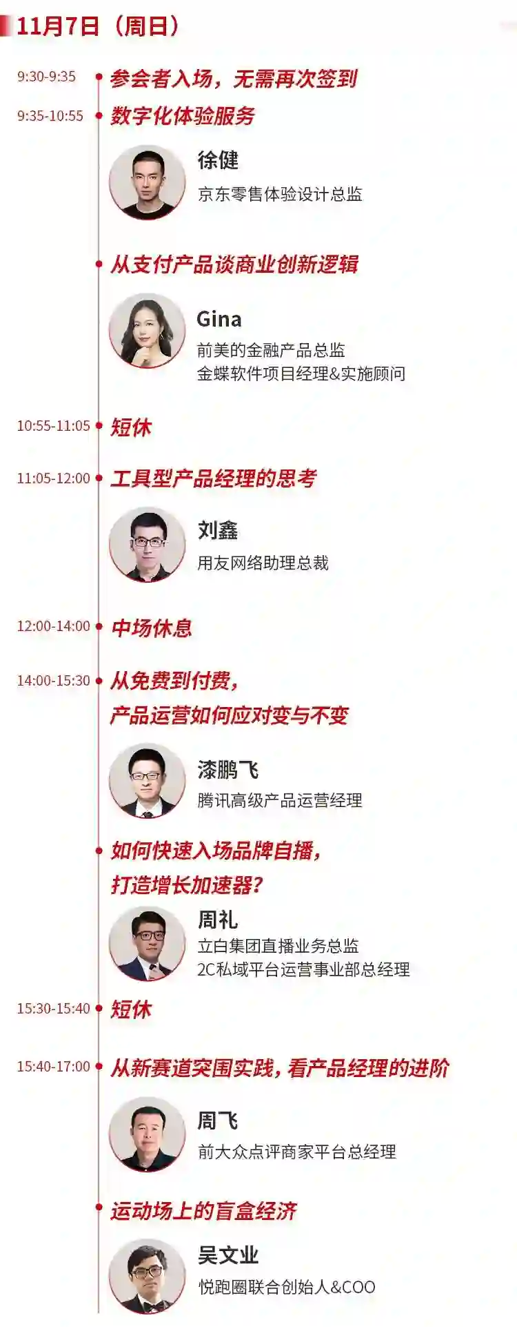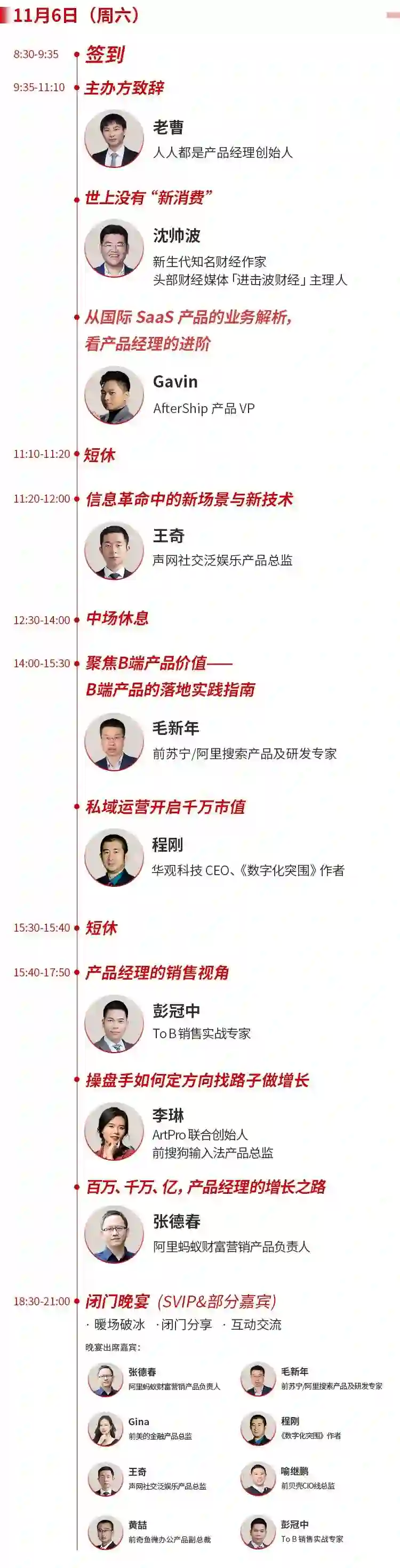 本场大会邀请了15位来自互联网行业一线的 产品实战派、业务操盘手、业内大咖 ,他们在各自领域都拥有多年的实战经历。