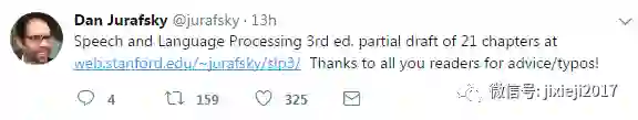 斯坦福大学教授Dan Jurafsky,在推特上发布了新书的草稿和下载链接。