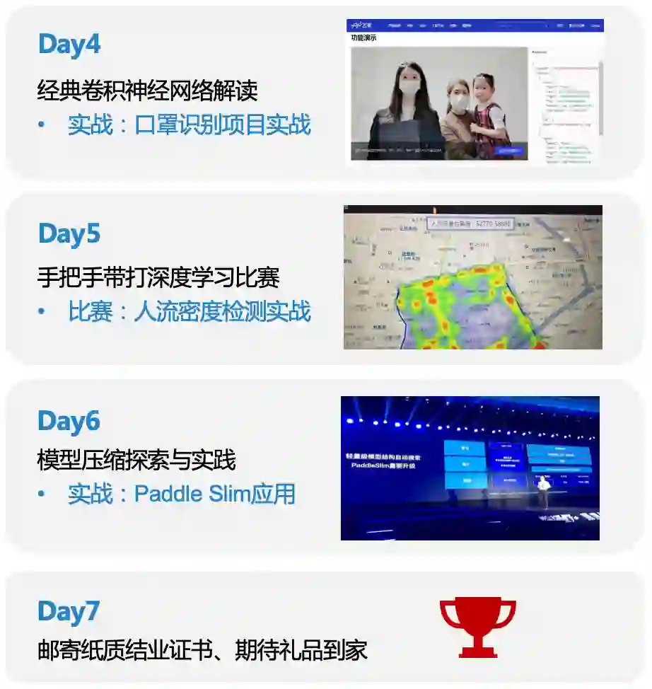 会者不难、难者不会,为了降低深度学习技术门槛、培养最优秀的AI人才,百度飞桨资深算法工程师、联合百度认证布道师团队,反复打磨推出了第五期百度深度学习7日打卡营,通过6个新冠疫情最新实战案例、1场人流密度实战比赛,一站式带大家零基础玩转深度学习CV。