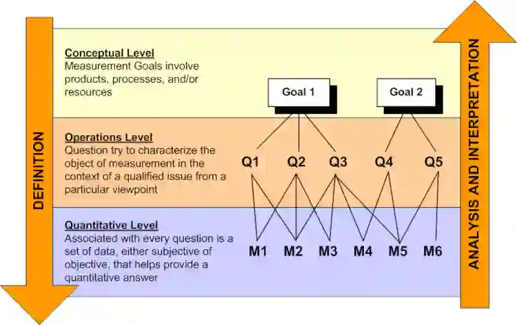 GQM(目标 - 问题 - 指标 )方法最早由 Basili 提出,发表在软件工程领域权威期刊 IEEE Transactions on Software Engineering 上。GQM 当初是为软件工程研究中的数据收集和分析而设计的,其基本思想是: