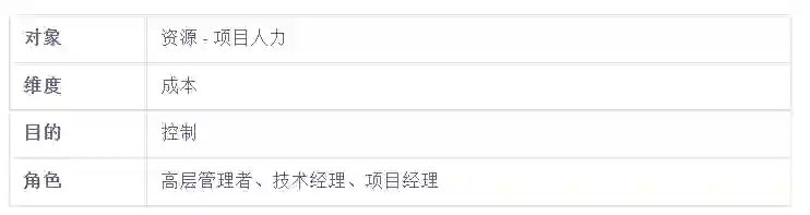 该组织当前的目标是控制项目人力成本,那么这个目标的四个要素如下:
