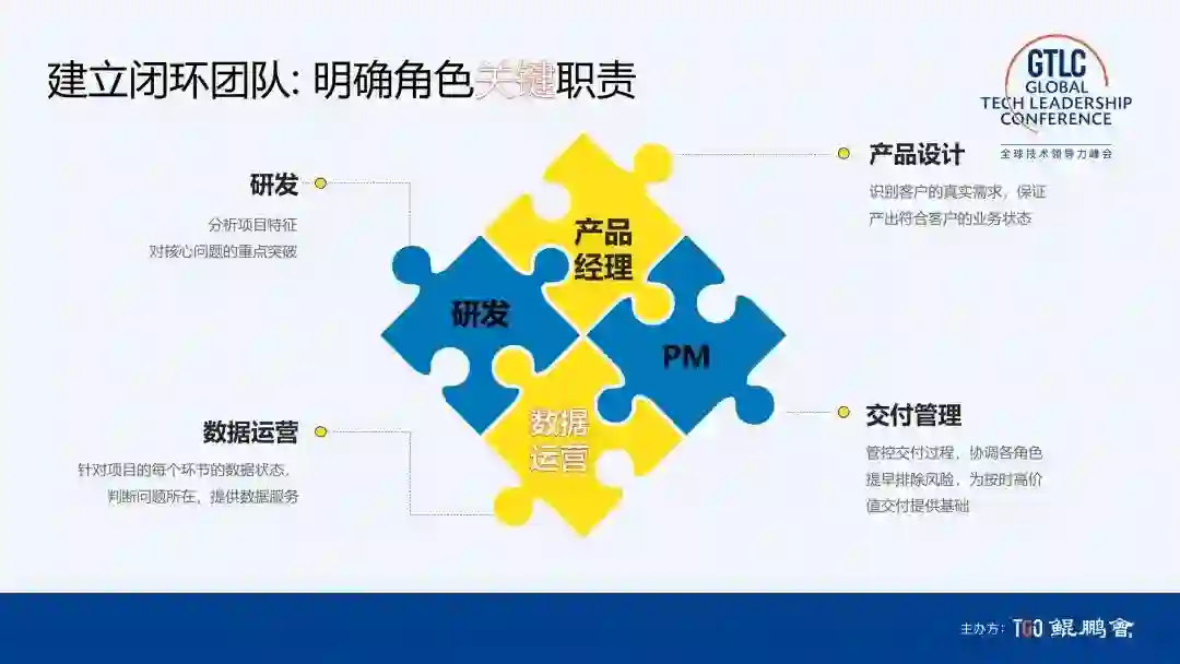 我们技术和业务的结合分为几个阶段,第一阶段是神秘主义,技术和商业中似乎有一道护城河,中国现在已经跨过了这个阶段;第二阶段是协作,其实就是卷王时代的特点,技术按需求工作,协同执行业务目标;第三阶段是技术引领的差异化,技术和业务边界模糊,强调的是技术怎样使业务快速试错。因为技术内核已经确定,在哪个场景能把内核的价值放大,是需要快速试错的;第四阶段是技术同学的梦想,就是代码主宰一切,可能是将来元宇宙带来的时代。